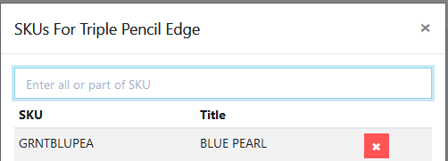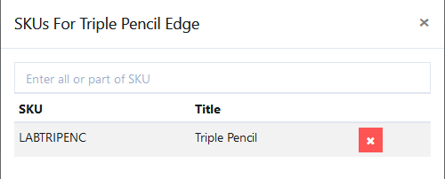 Once you click Edit, a dialog will pop up showing the existing SKUs (or a message that none have been added to the task), along with the ability to add new SKUs to the task: