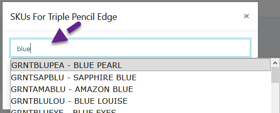 To add a new SKU, enter all or part of the SKU in the box to search: