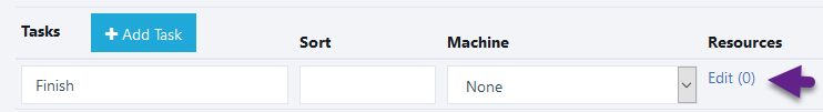 To manage the production resources assigned to a task, click on the Edit link the the Resources column of the task:
