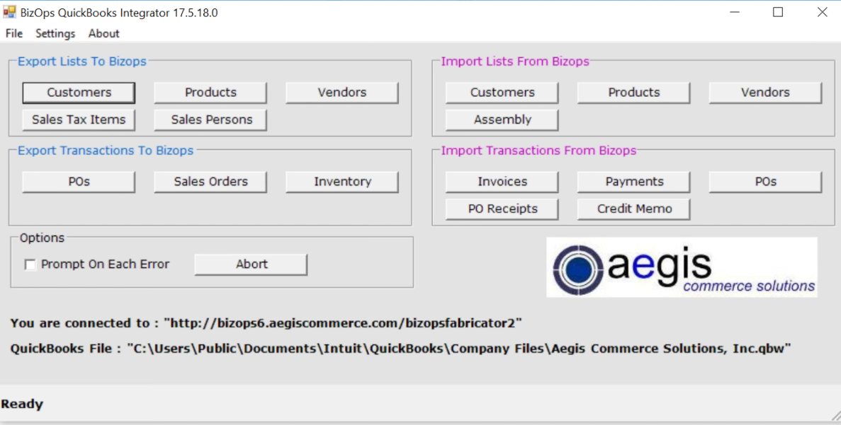 After setting up the configuration to connect to your instance of BizOps and your QuickBooks company file, the integrator is used to move information between BizOps and the accounting system.