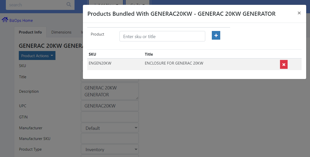 This functionality can be accessed from the Product Detail page by clicking on “Manage Product Bundles” under the Product Actions tab.