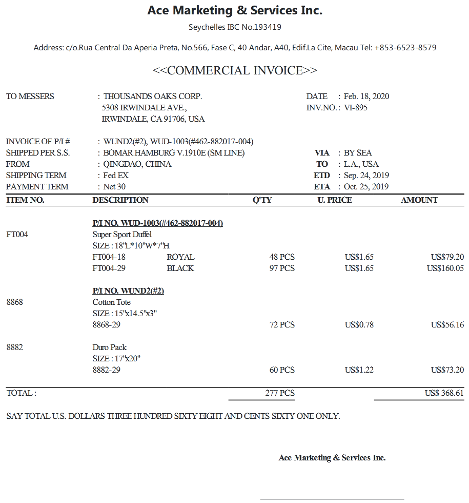 COMMERCIAL INVOICE