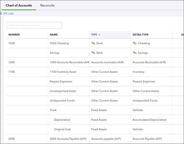 After you have enabled the account numbers, go to the Chart of Accounts List page in Quickbooks Online to specify your account numbers: