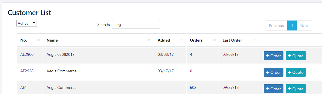 - Clicking on the Customer Number will take you to the customer detail page for that customer.