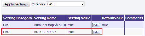 Select Category "EASI". The system setting "AUTOSEND997" is set to "true" to generate and send the EASI-997 files to the respective customer via ftp.