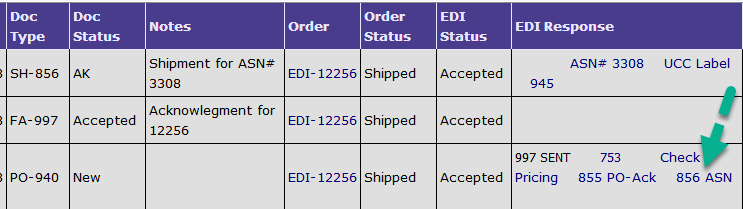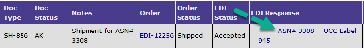 The ASN is filled out and when the window is closed, the ASN number is displayed in the EDI Response column.
