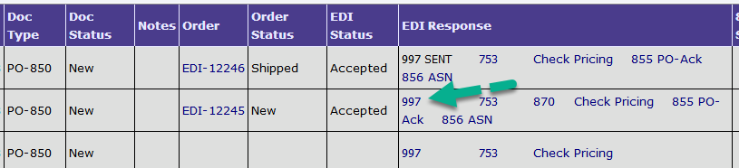 You can generate EDI 997 by clicking 997 link in EDI Response column on EDI Center.