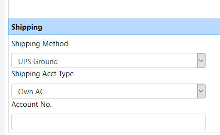 For Drop ship accounts, fill in the account # you will be using. Customer accounts account information is set up in the customer's record.