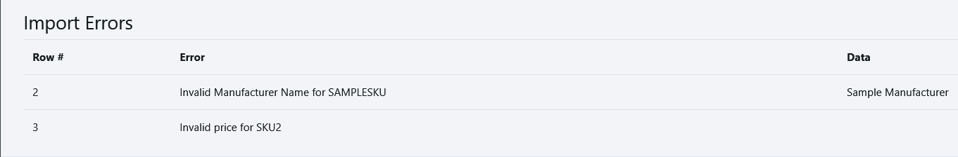 If you do encounter errors on certain rows, you can correct them and reupload the same spreadsheet. It will skip existing SKUs (it will report an error that SKU exists and move on to the next row to process).