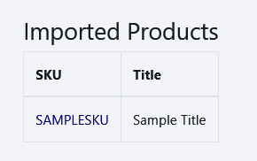 Products that were successfully imported are shown. The SKU is a link to the product detail page for that product.