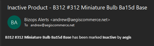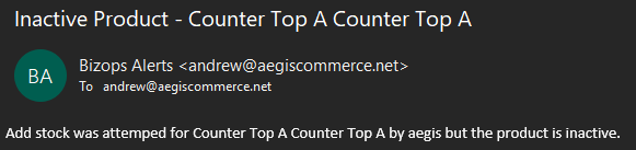 An email can be configured to receive notifications when a product is marked inactive (and reactivated), as well as when someone tries to add stock to an inactive product.