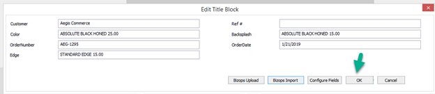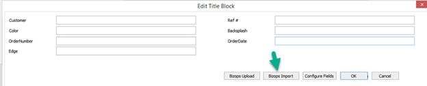 3) Clicking on Edit Title Block will pop up a window – click on Bizops Import: