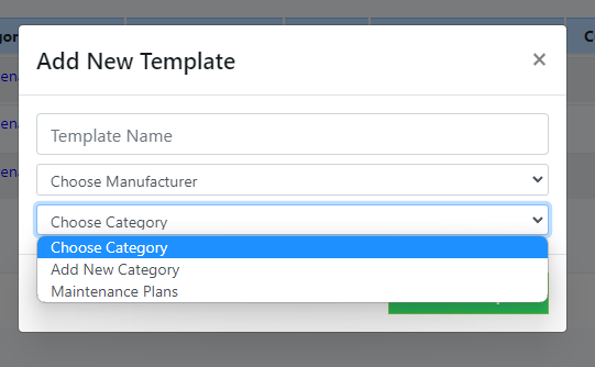 The template title, category, Manufacturer, duration and Inactive attributes of the template can be modified from the screen by clicking on the individual fields and updating them.