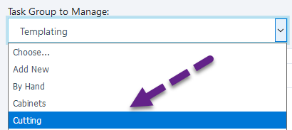 To manage an existing Task Group, select it from the Task Groups dropdown in the Production Task Manager