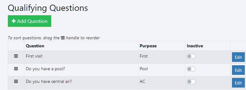 Questions can be marked inactive by clicking on the inactive toggle button next to the question.