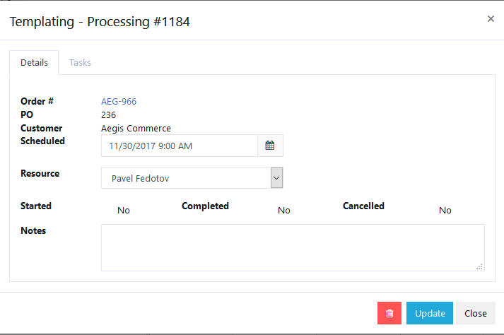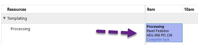 From the Production Scheduler, you can view the details of a scheduled Task by clicking on the task on the scheduler: