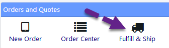 The Fulfillment Icon is selected to Process an order and prepare it for shipping. The Fulfillment Window will open after selecting the fulfillment icon. Similar to the the Order Detail Page, there are two tabs at the top titled Fulfillment and Shipping. The Tab selection in the illustration above shows that this is the fulfillment tab. At the top of the page are filters so that orders can be listed according to the user's needs.