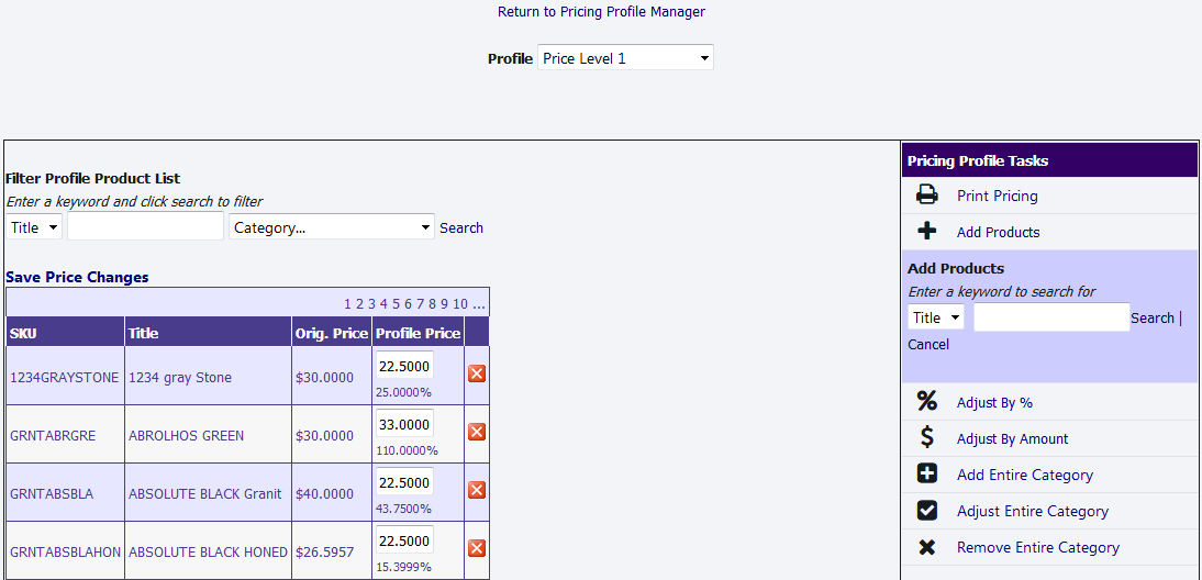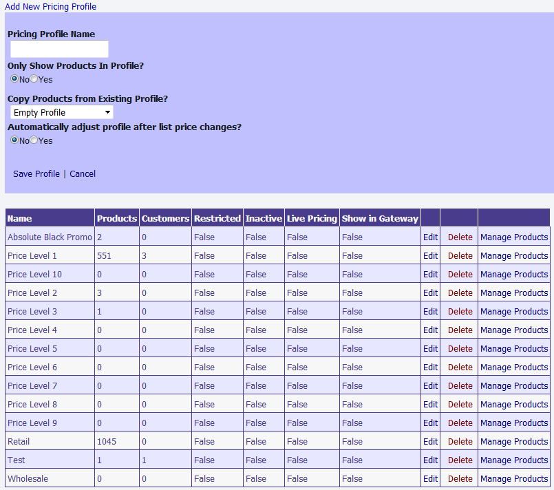 Live Pricing – If profile is marked Live Pricing, then all the products entered in the profile will have live update. Means if the List price on the product changes the pricing profile price will automatically update based on the percentage of the list price you used while creating the profile.