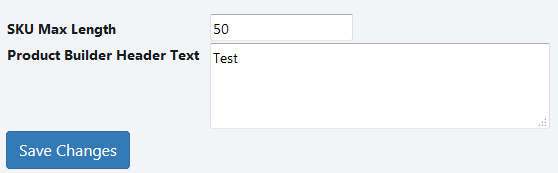 On this screen, you can define maximum length of SKU and header text of product builder.