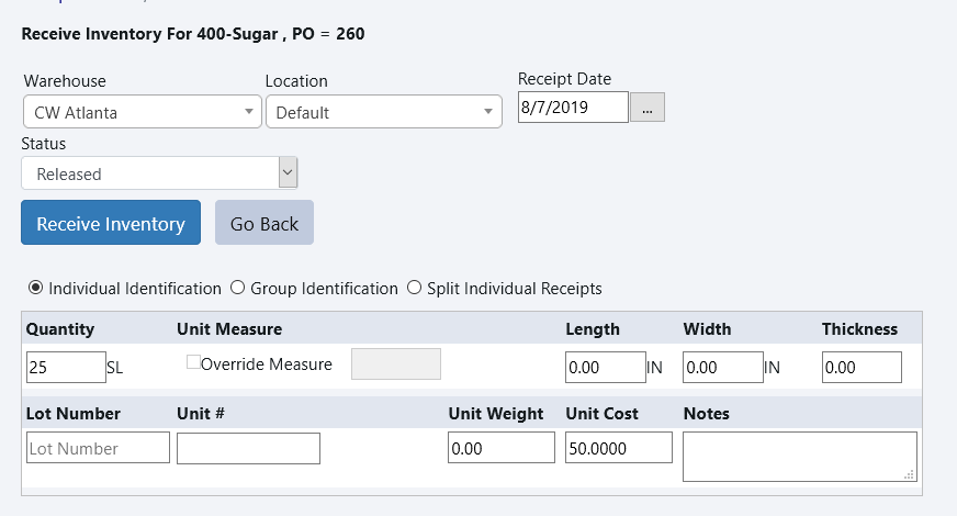 You can also receive inventory per lineitem by clicking on Receive Inventory on the lineitem: