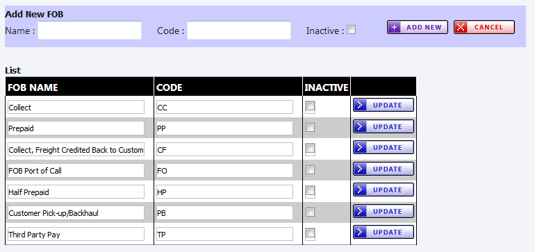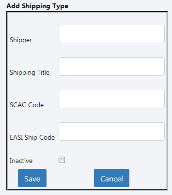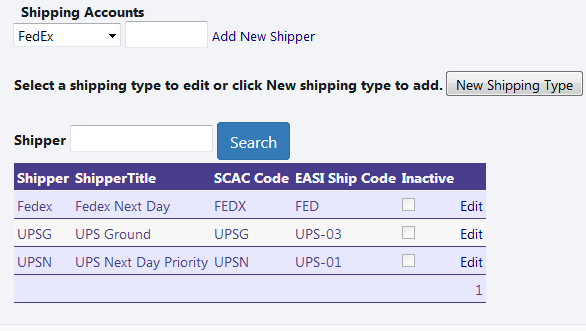 Here you can add / edit shipping type with its SCAC code and EASI ship code. You can also add Shipping Account Number for particular shipping types.