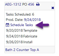 To schedule a single production order, click on Schedule Tasks on the Production Order in the left column on the schedule:
