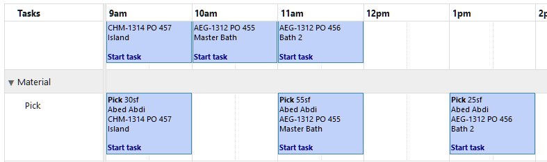 Once you click on Save Tasks, the selected tasks will be scheduled for the selected resources on the selected date. If additional business days have been specified for a particular task group, those tasks will be scheduled relative to the selected date.
