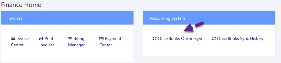 To sync data between Bizops and Quickbooks Online, you use the Quickbooks Online Sync option in Finance: