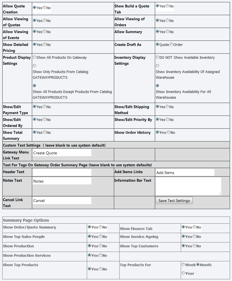 Here you can define the default values and visibility of particular pages and fields for Gateway System.
