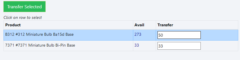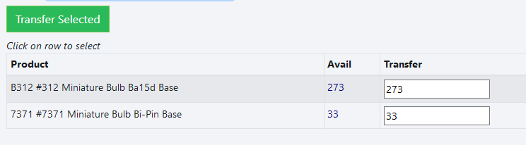 Once selected, it will show parts available for transfer.