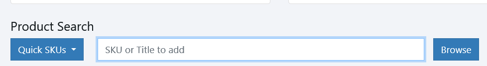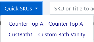 The Quick SKUs menu allows you to quickly access common SKUs that are used on orders. If any skus have been configured, the menu will show next to the Product Search box: