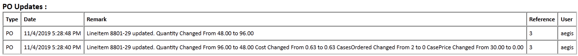 The list of changes made in PO will be sent to an event subscriber via email when "POUpdates" activity is called after the specified time interval in minutes.
