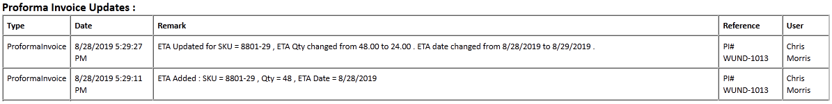 The list of changes made in Proforma Invoice will be sent to an event subscriber via email when "ProformaInvoiceUpdates" activity is called after the specified time interval in minutes.