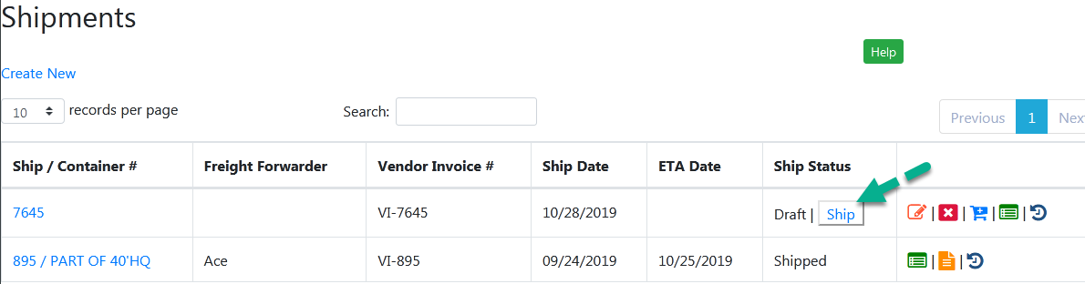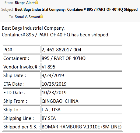 The details of shipped container will be sent to an event subscriber via email when vendor changes the shipment status to Ship.